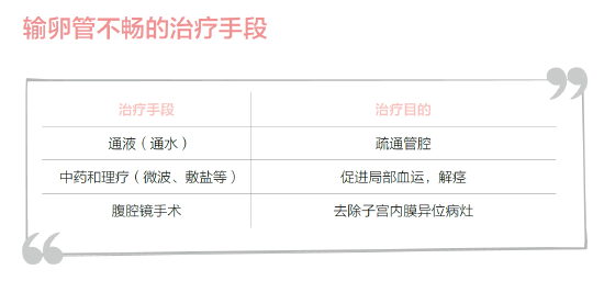 上述手段中,通液、中药和理疗治疗简便,没有太多不良反应,多数医院都能做;腹腔镜则对设备和医生的经验有一定的要求。另外,术后一年再阻塞率为30%。
