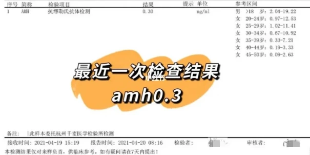 我是2021年年底做的生育力检查,左右两侧的窦卵泡数只有3-4颗,AMH值在0.3,说是卵巢早衰,医生让我早点准备试管,卵巢功能是不可逆的,越拖卵巢功能就会越差。