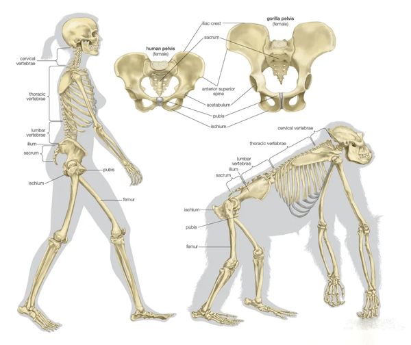 但是直立行走也有明显的缺点,为了维持直立行走的稳定性,人类的盆骨注定不会太大,而黑猩猩虽然也会间接直立行走,但因为它们盆骨较大,直立行走时 会摇摆,并不稳定。