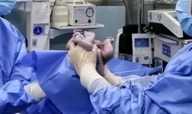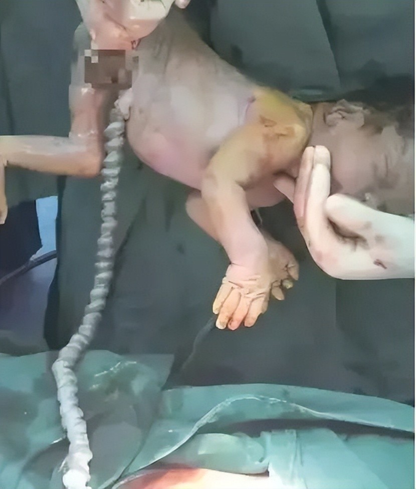 为了解救胎儿,医生只能使用产钳助产夹出宝宝,宝宝出生了,医生发现胎儿脐带扭转近50圈,万幸抢救成功了!