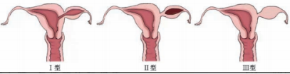 根据异常侧副中肾管是否发育成子宫、是否有子宫内膜以及是否与单角子宫有交通孔道分为三型,见图5。