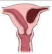 4.残角子宫 :一侧副中肾管不同程度发育异常,仅有子宫体及输卵管形成,而无子宫颈及阴道结构,子宫体末端为盲端,称作残角子宫。