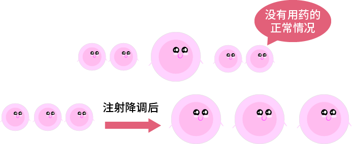 试管婴儿降调用于超促排卵方案,目的是降调节治疗给予外源性FSH(促卵泡生成素),可以促使一批卵泡同步发育,抑制自然周期中单个优势卵泡的发育,从而获得多个成熟的卵子,进而获得较多的可用胚胎。