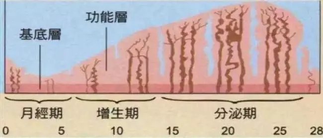 因此,子宫内膜厚度不是一个固定值,它会随月经周期的变化而变化。分为月经期、增殖期、分泌期三个不同阶段。以一个正常月经周期28天为例: