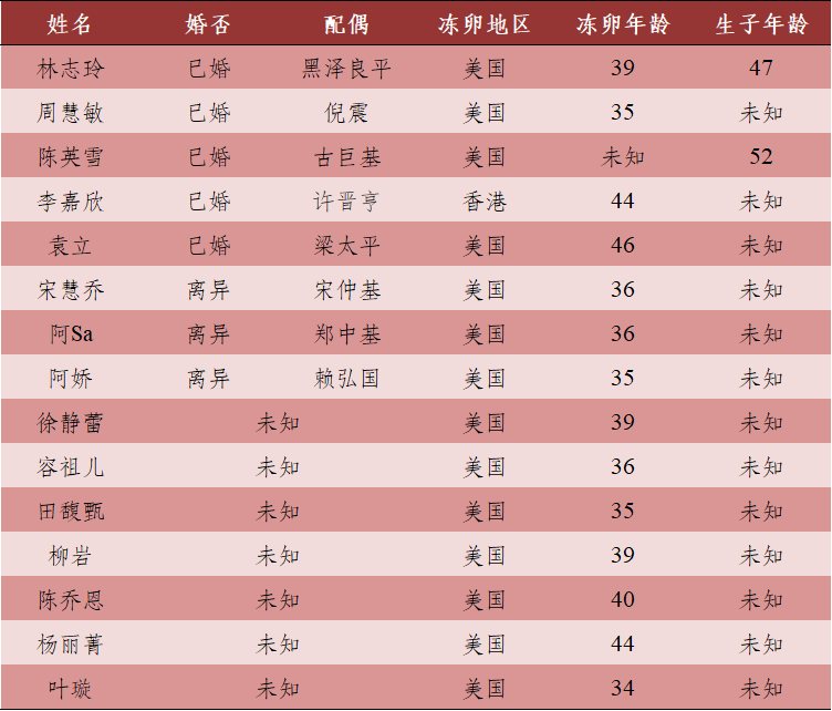 表1 部分冻卵女明星名单