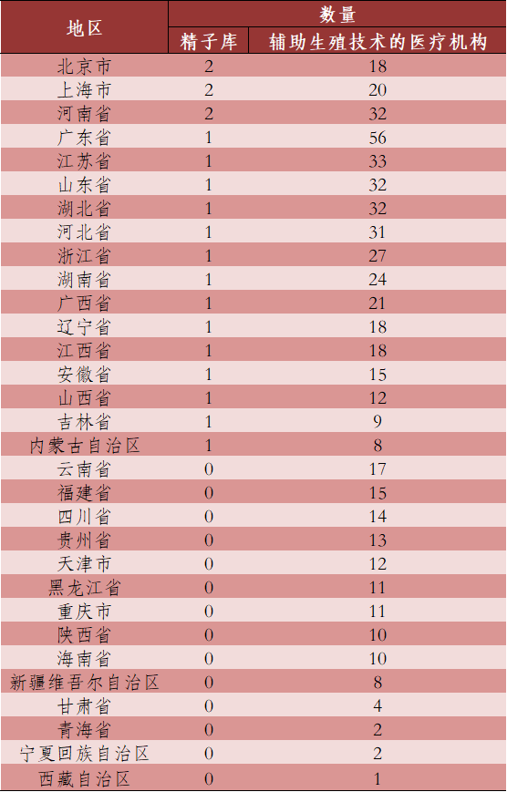 表2 经批准开展人类辅助生殖技术和设置人类精子库的医疗机构名单