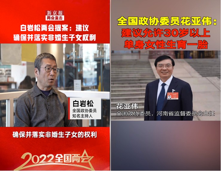 2020年两会期间,全国人大代表、山东中医药大学第二附属医院生殖医学科主任医师孙伟提出“禁止单身女性冻卵”;全国政协委员、律师彭静提案建议,赋予单身女性实施辅助生育技术权利。