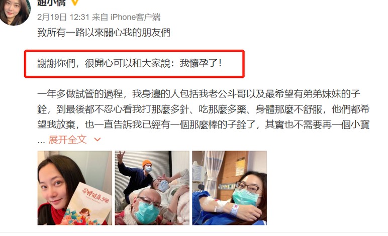 台湾女星赵小侨,2月19日,在个人社交平台非常开心地告诉大家,自己怀孕了。