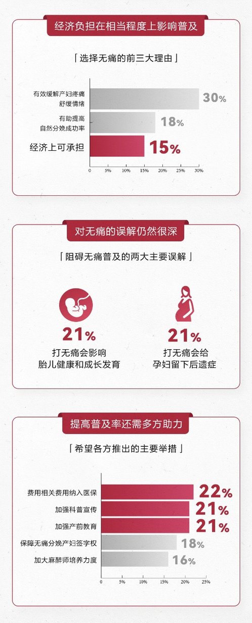 同时,调研报告显示,经济负担也在相当程度上影响了无痛分娩的普及,15%的受访者认为经济可负担对无痛分娩普及十分重要,呼吁包括纳入医保、科学普及等多种举措。为此,浙江省妇女儿童基金会与Babycare联合发起和成立“白贝壳关爱专项基金”,将助力首批100位有需要的准妈妈,免除分娩镇痛费用。据了解,这是国内首个针对无痛分娩进行资助的专项基金。