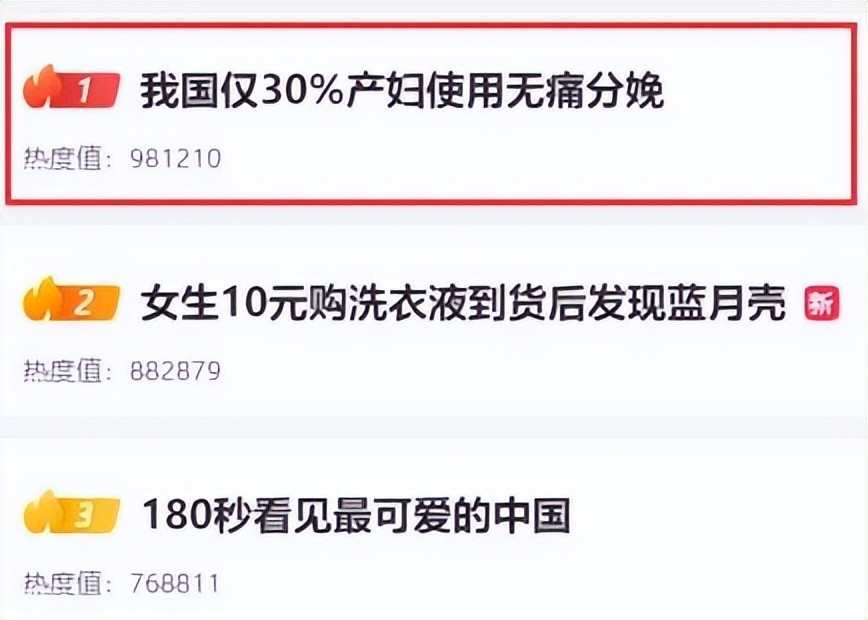 当天,一则关于「无痛分娩」的话题登上微博热搜榜第一名,引发1.1亿人的关注。