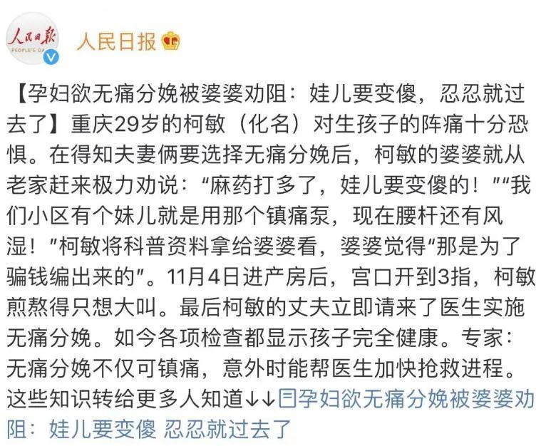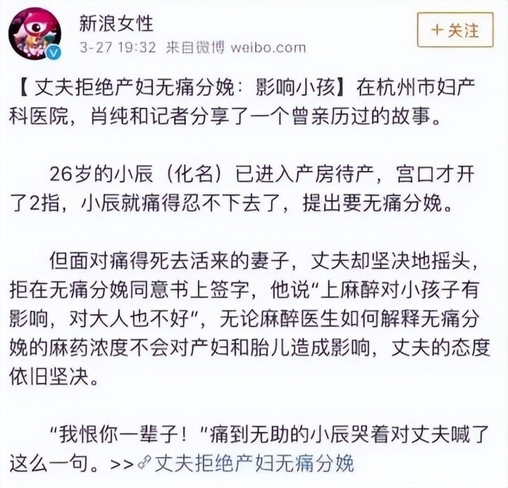 这样的例子还有很多很多,即便无痛分娩已经全国推行,仍有很多家属拒绝让产妇使用无痛分娩。