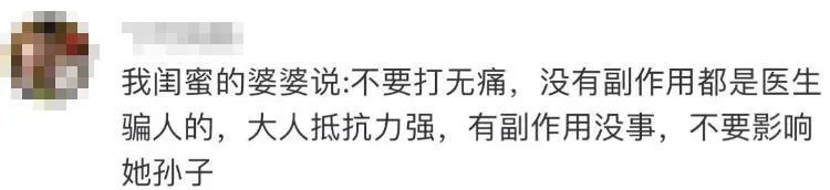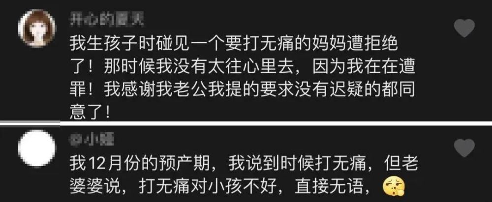 有位网友说:肯定还有很多借口说无痛对胎儿不好不让打的婆婆和老公!
