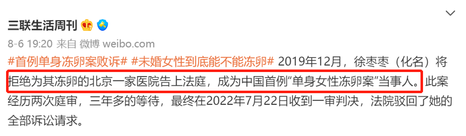 全国首例单身女性冻卵案败诉。