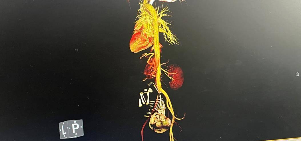 急诊、产科医生立即安排CT血管造影检查以及超声检查,结果显示:这名孕28周的患者为急性A型主动脉夹层,且程度严重,从主动脉根部一直到腹主动脉均发生撕裂。