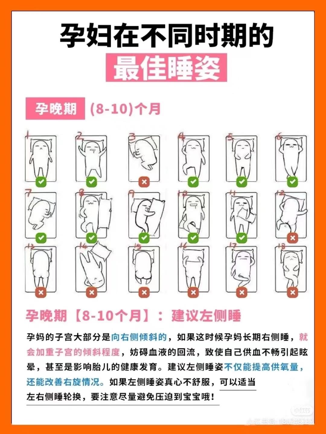 建议左侧睡孕晚期孕妈子宫大部分是向右侧倾斜的,如果这时候孕妈长期右侧睡,就会加重子宫的倾斜程度,妨碍血液的回流,致使自己供血不畅引起眩晕,甚至是影响胎儿的健康发育。也可以适当左右侧睡轮换,要注意尽量避免压迫到宝宝。